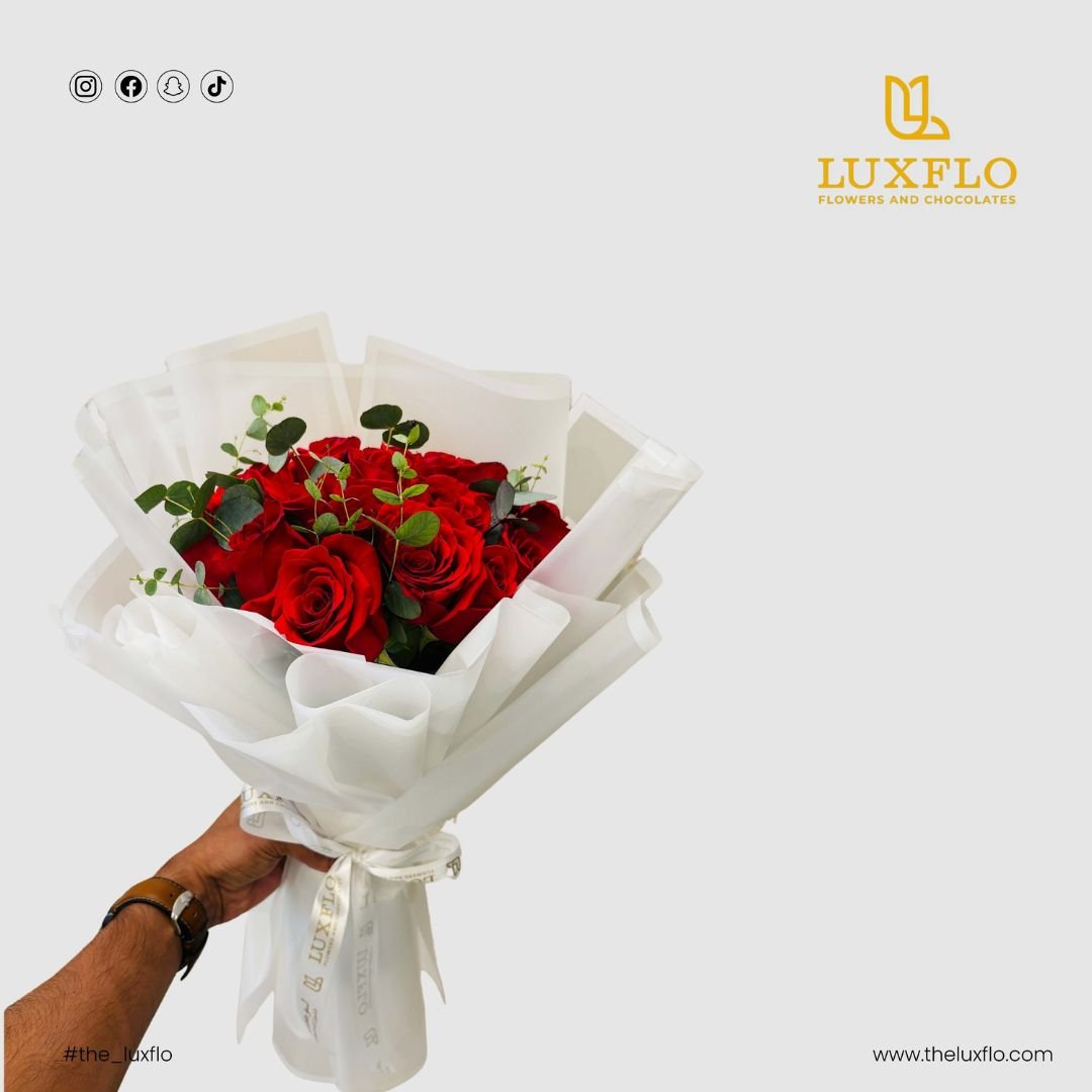 Call Us WhatsAppBeautiful Red roses, Eucalyptus Leaves with white wrapping. ✨✨Enduring red roses, timeless eucalyptus leaves, and elegant white wrapping symbolize eternal devotion.