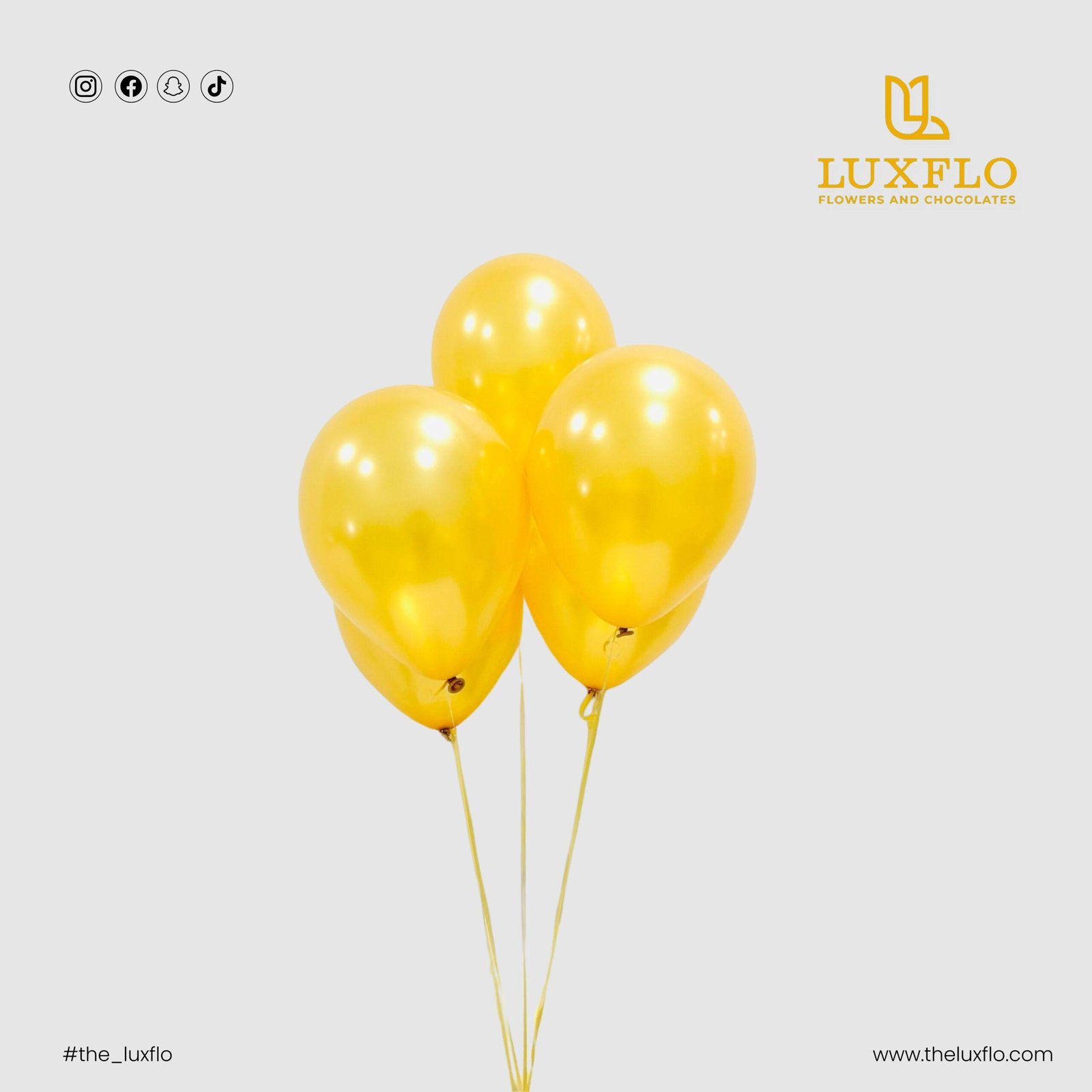 Call Us WhatsAppA joyful cluster of five radiant 12-inch gold helium balloons, rising with warmth and celebration. A delightful accent for any special occasion. Comes with a complimentary greeting card to complete your thoughtful gesture.