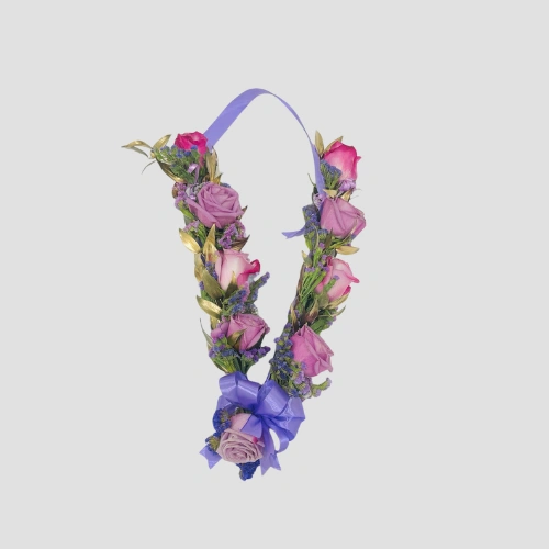 Call Us WhatsAppA charming garland made with elegant purple roses and shimmering golden Ruscus — a cheerful, delightful accent for your little girl or boy on any special occasion. Note: Kindly mention the child’s age and whether it’s for a girl or boy. Customization colors available: Red, White,Pink,Blue or Yellow (based on availability).