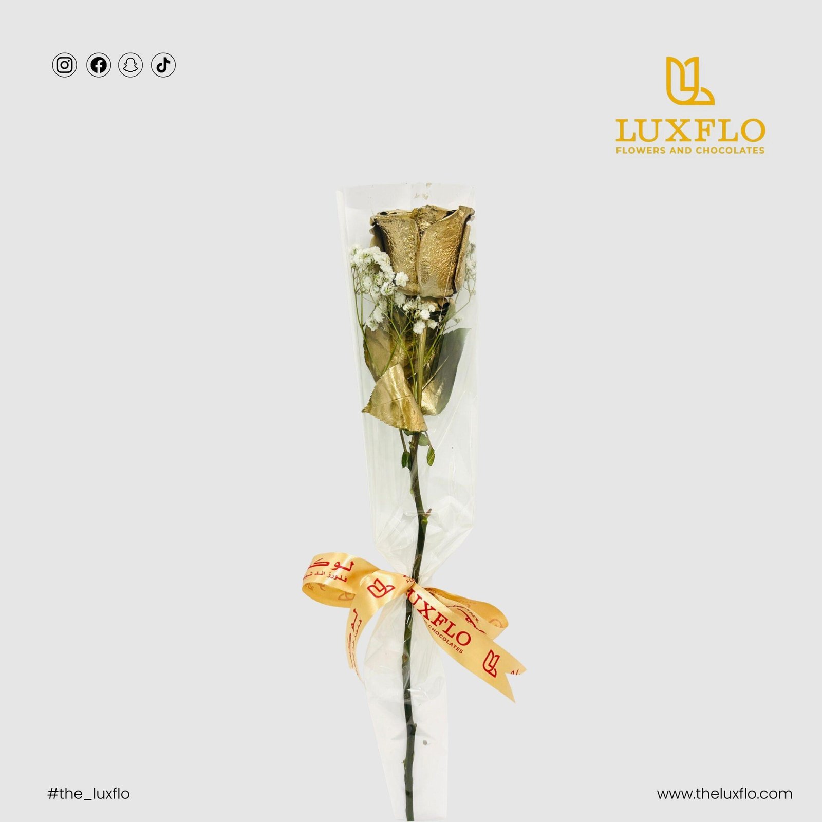Call Us WhatsAppA stunning gold rose paired with soft white gypsophila, wrapped in elegance — a luxurious gesture of admiration and success.