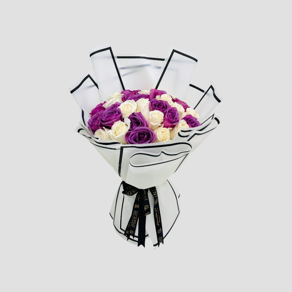Elegance meets charm with this stunning bouquet of 30 fresh white and purple roses, beautifully arranged in a classy white wrap. Perfect for birthdays, anniversaries, weddings, or special celebrations, this arrangement symbolizes love, grace, and admiration. A timeless floral gift that brings sophistication and joy to every occasion.